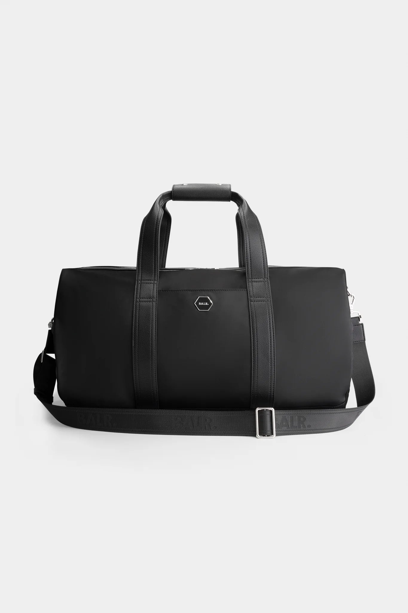 Exude style and sophistication with the BALR. Classic Duffle Bag in Jet Black. Made from durable nylon, featuring a branded strap and a sleek Hex Metal Badge, this bag is not only a statement piece but also a practical choice for your travels. Upgrade your luggage game and arrive in style.
